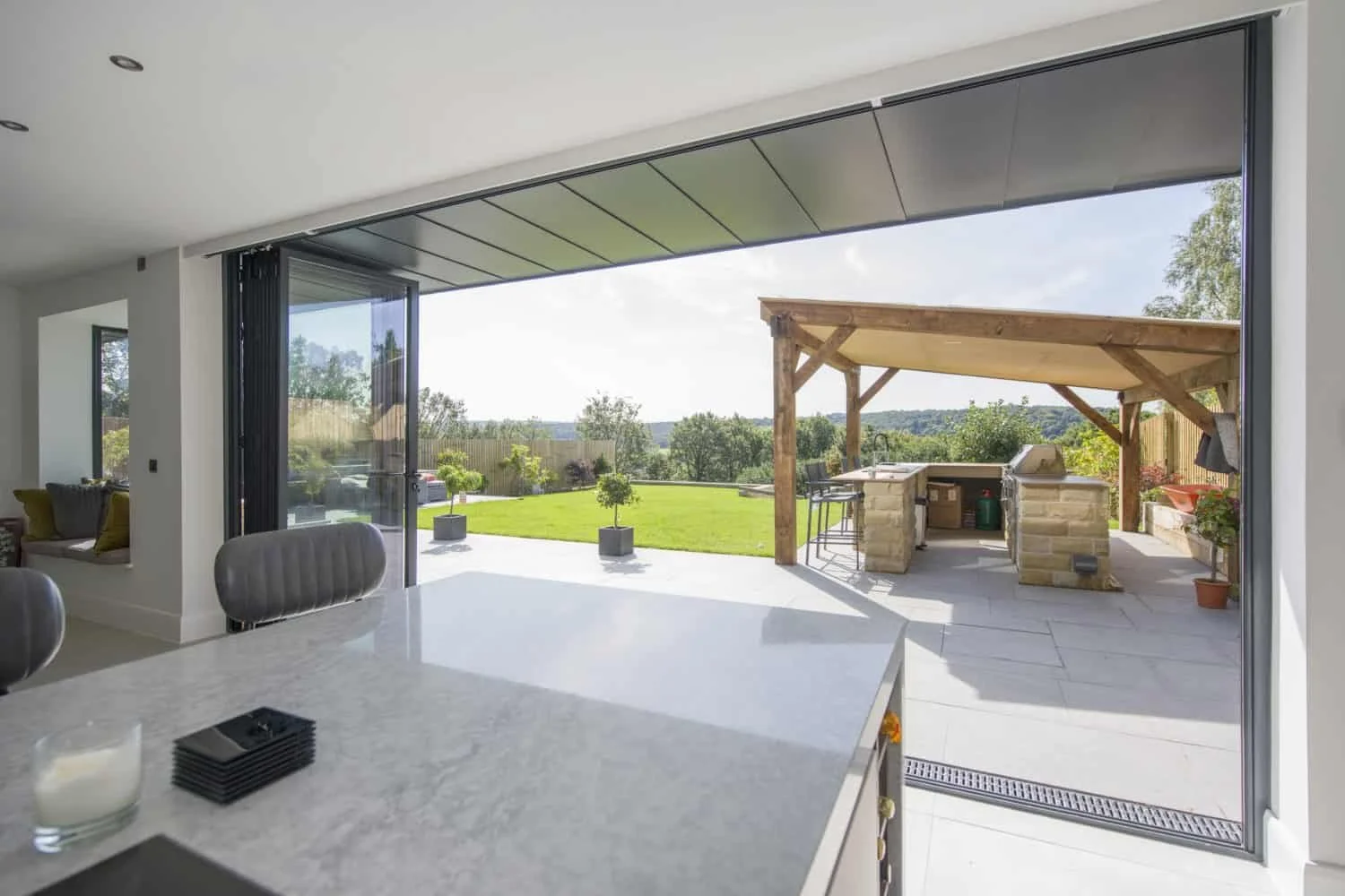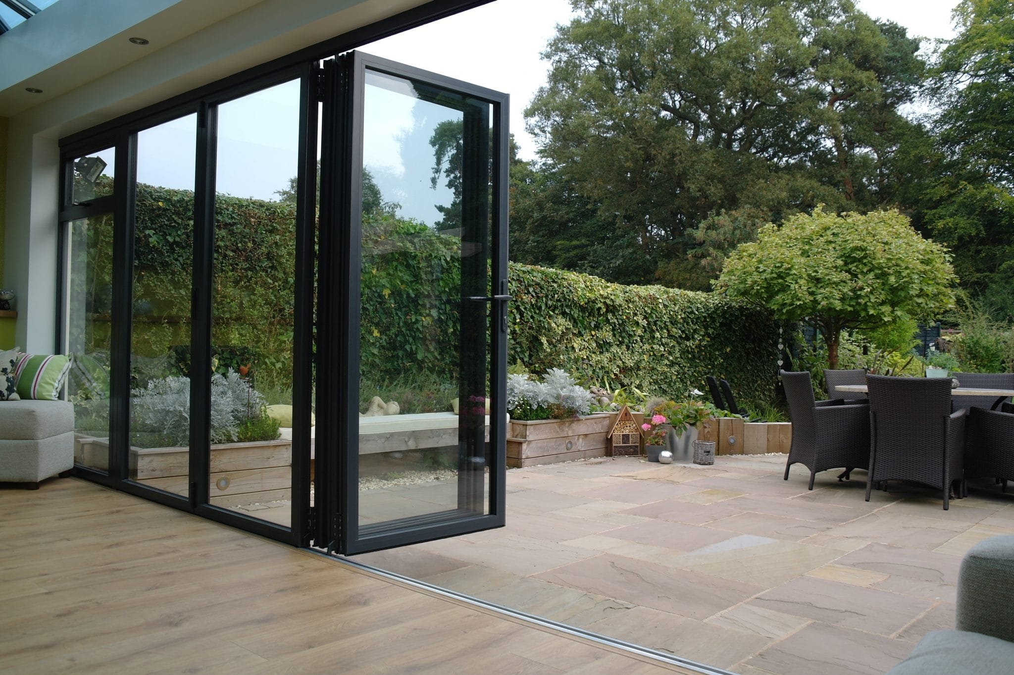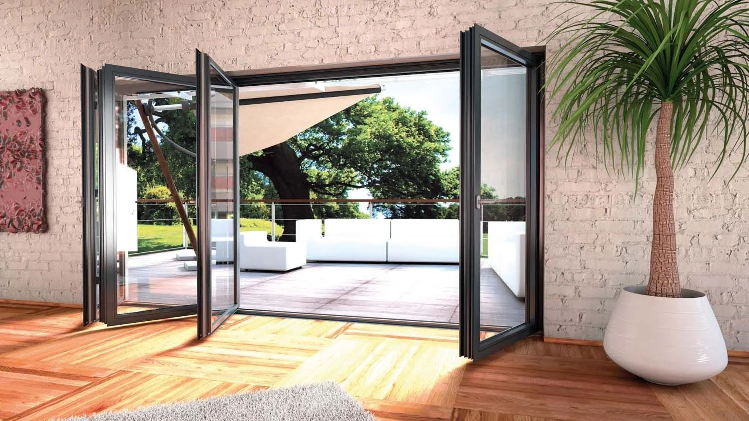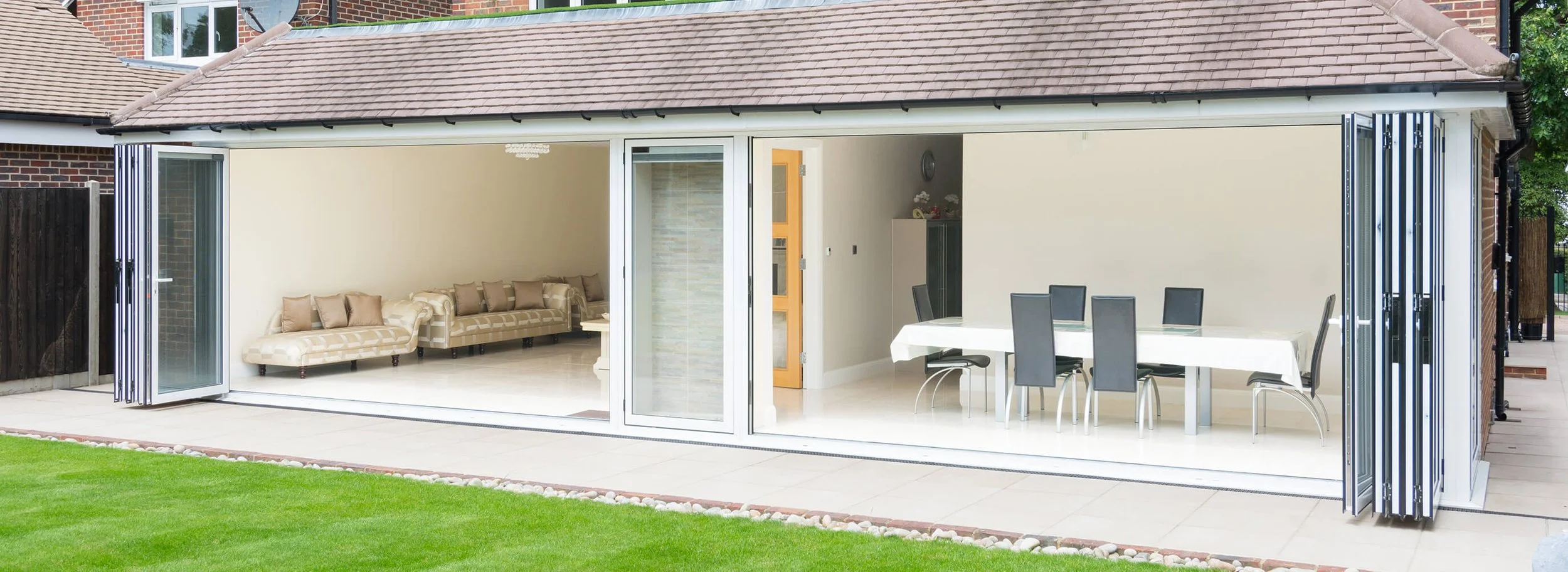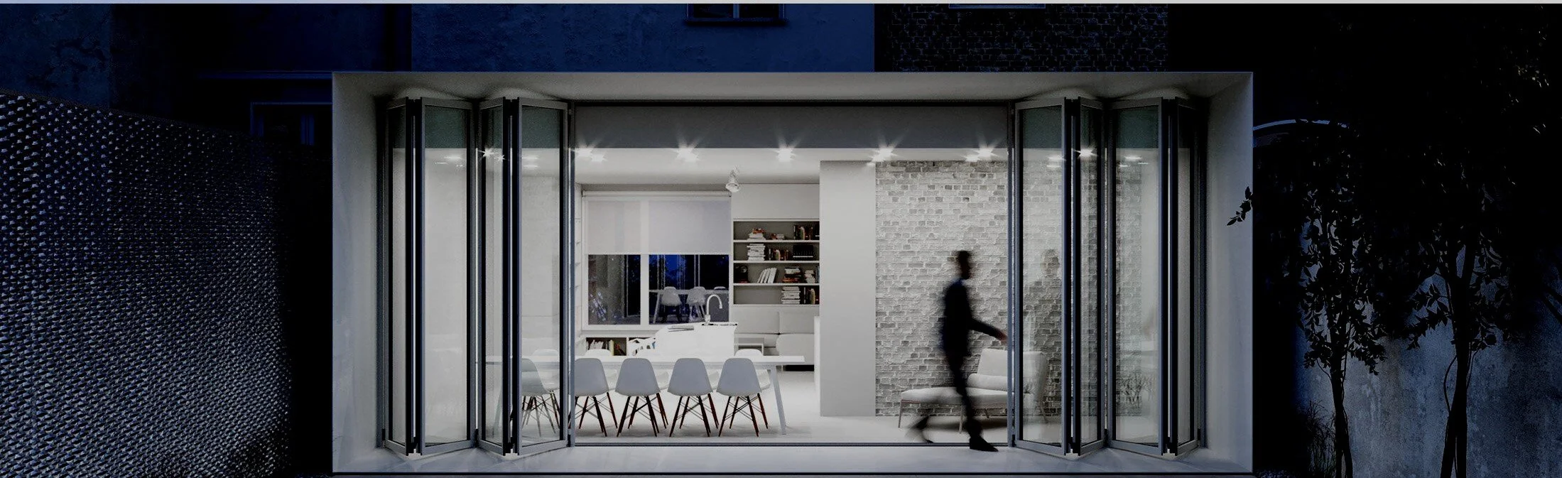 Come-in Multishades’ Bifold Doors - The distinction between indoors and outside is blurred by bifold patio doors. The Multishades bifold door systems flood rooms with light when closed and link your house with your garden when open, thanks to their sleek, contemporary designs.