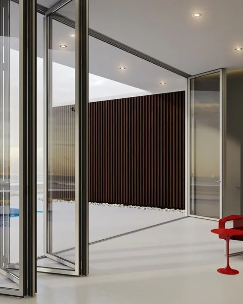 Bi-folding doors allow for a smooth transition between the interior and exterior of a building, making it easy to open up a room and bring the outdoors inside. They can also add a unique and relaxing atmosphere to a space.