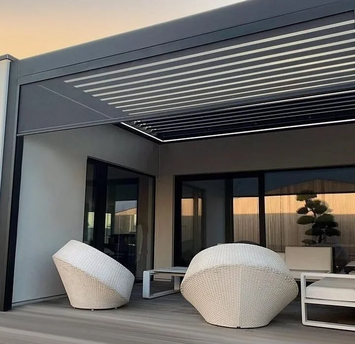 Pergolas are a stylish way to add shade to an outdoor space. They can be made even more convenient with the use of a motor and remote, which allow for easy opening and closing of the structure.